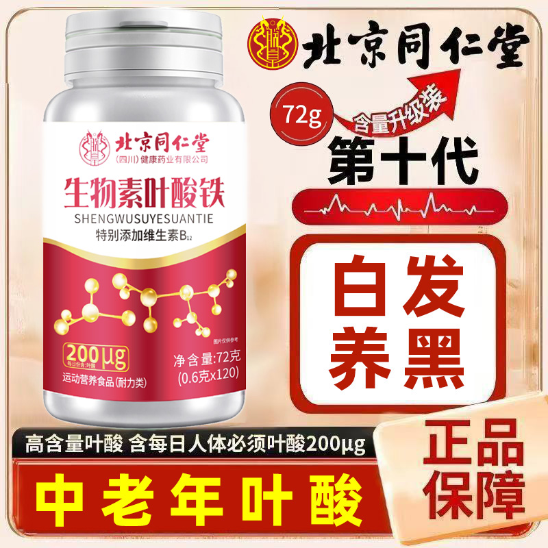 北京同仁堂生物素H铁叶酸片多种维生素B6黑发头养脱正品健康复合