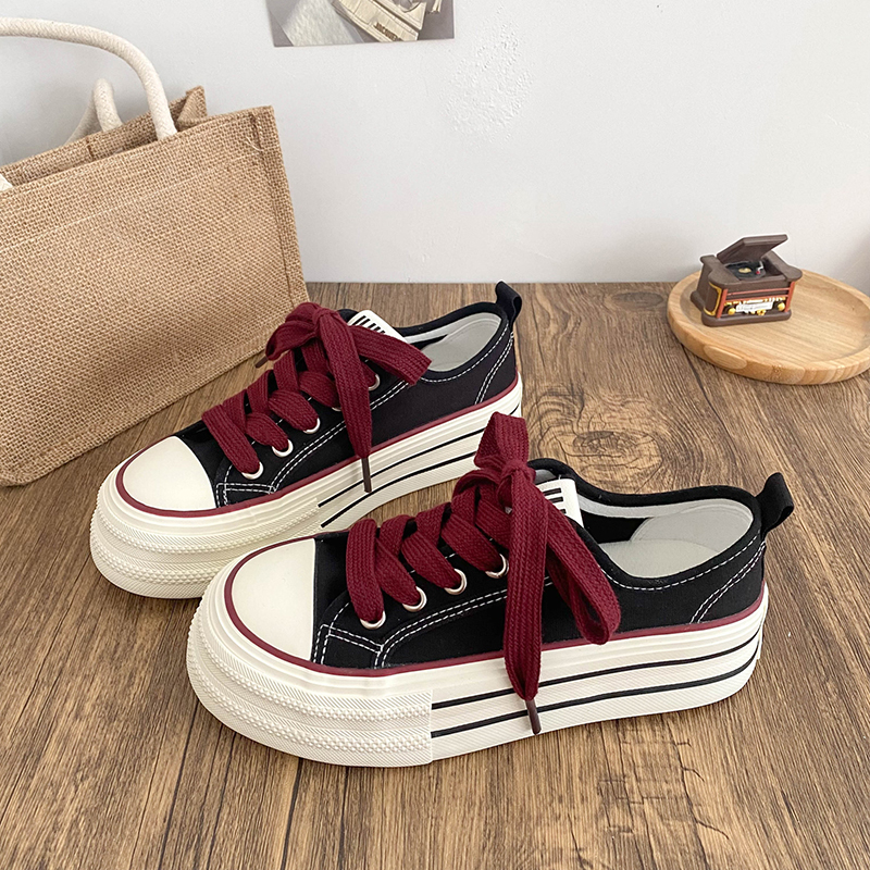 环球酒红色帆布鞋女款2025年秋季新款爆款学生百搭鞋子女休闲板鞋