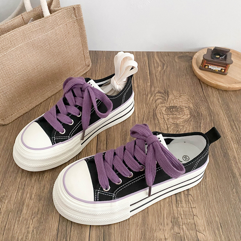 厚底增高学生透气帆布鞋女2025春秋新款松糕底休闲百搭小白鞋板鞋