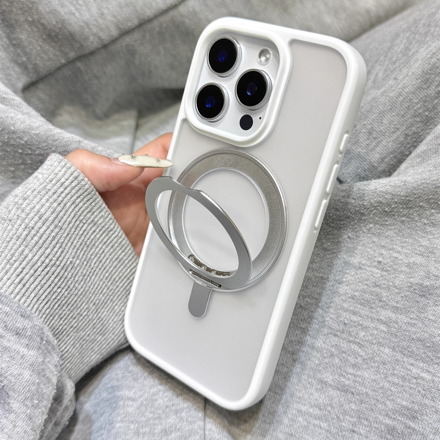 简约白色雾面磨砂亲肤质感隐形磁吸支架适用于iphone17promax苹果14手机壳15新款16pro女13亚克力17pm防摔套