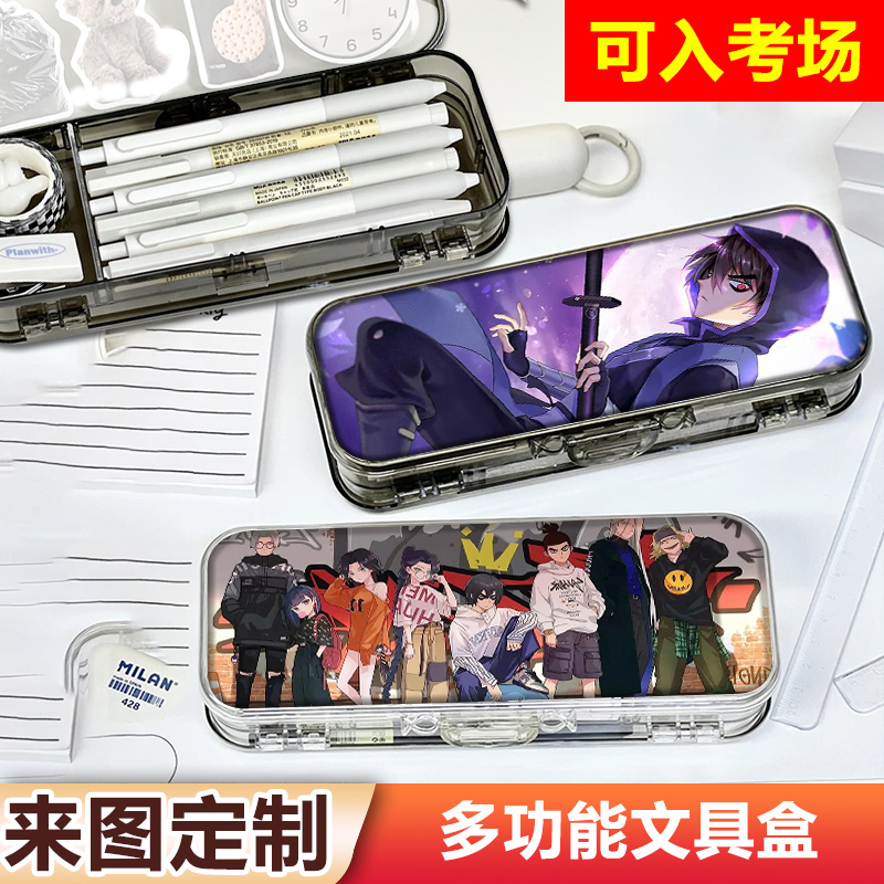刺客伍六七阿柒透明笔盒高颜值多功能铅笔盒双层大容量文具盒学生