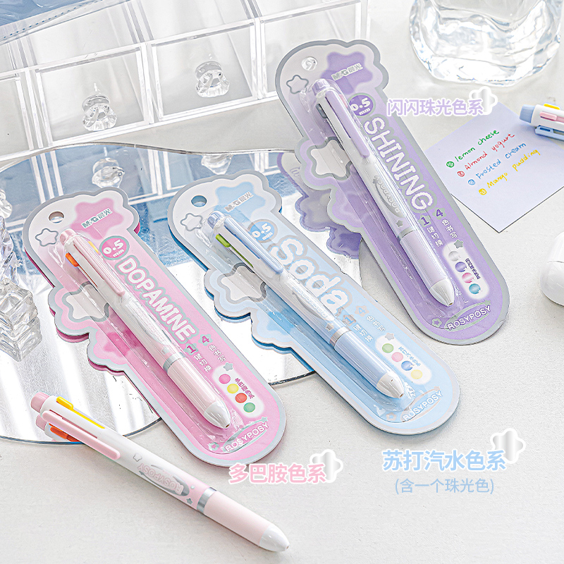 RosyPosy柔设四色笔彩色中性笔晨光联名多色笔高颜值ins风四色笔顺滑速干彩色星星标记笔少女心好看的黑水笔
