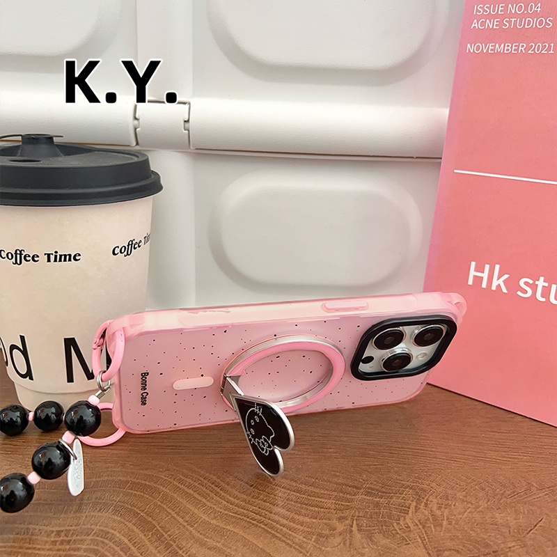 简约kt猫心型磁吸支架手机壳带挂绳适用于苹果16PRO华为mate60/70手腕斜挎14/15ultra四角开孔vivo200防摔
