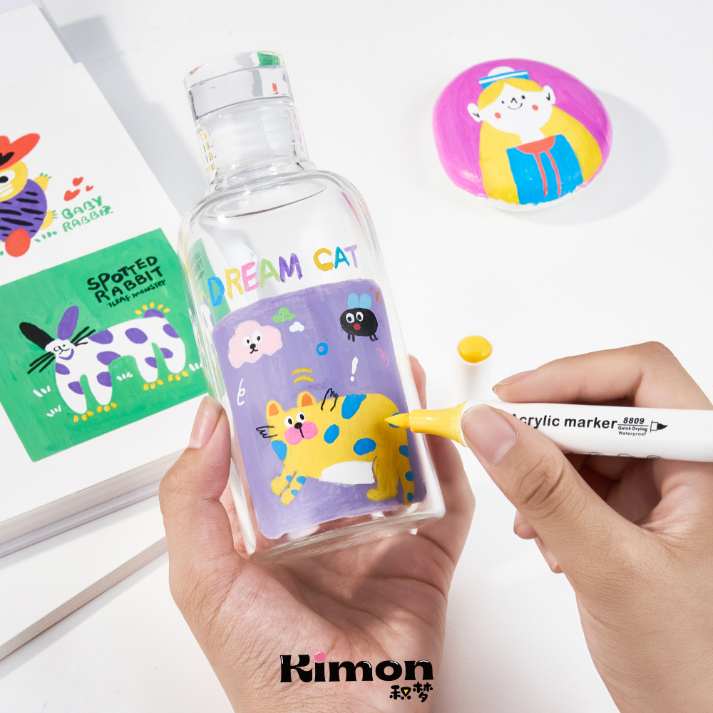 恩米小黑盒直液式丙烯马克笔软头颜色笔小学生幼儿园画画美术专用
