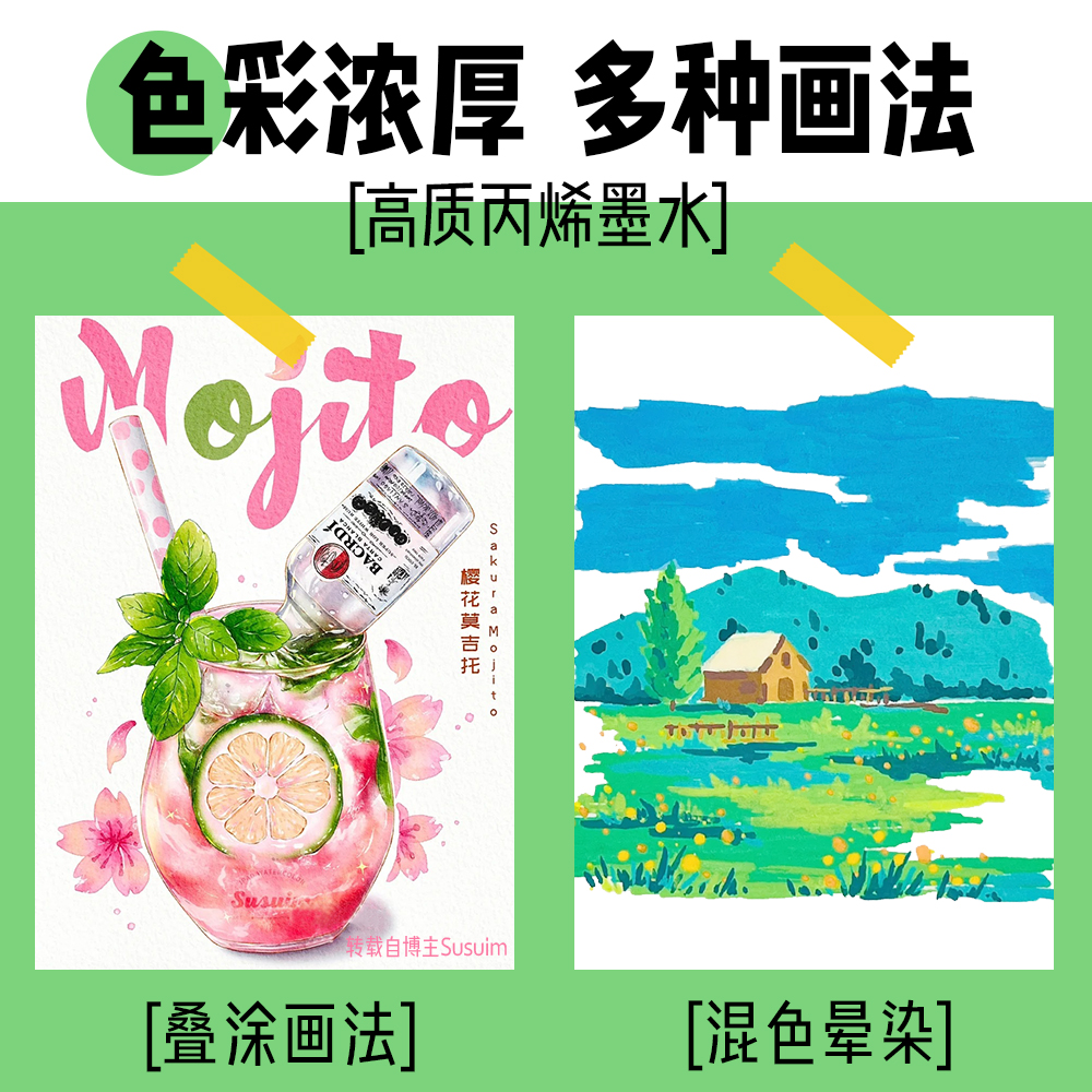 积梦丙烯马克笔双头水性软头可叠色儿童专用涂鸦笔不透色水彩笔学生防水彩绘笔手办补色速干丙烯白笔36色套装
