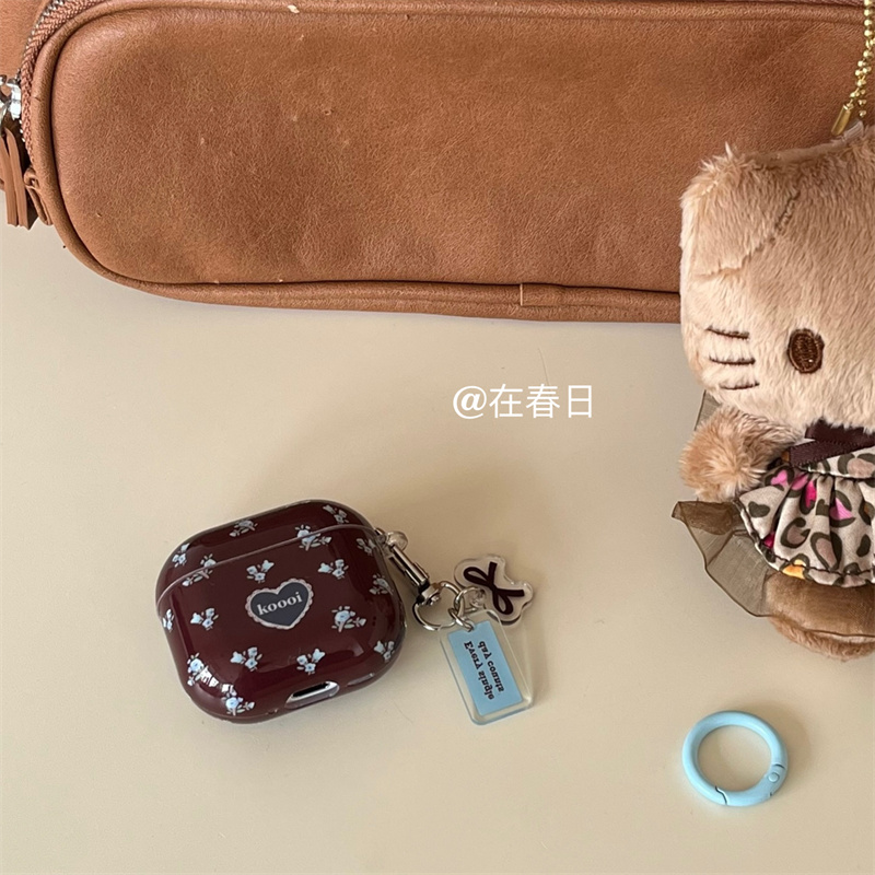在春日法式复古棕蓝碎花蓝牙无线耳机3代适用于AirPods pro1/2保护壳分体新款苹果4代小清新耳机壳1/2代