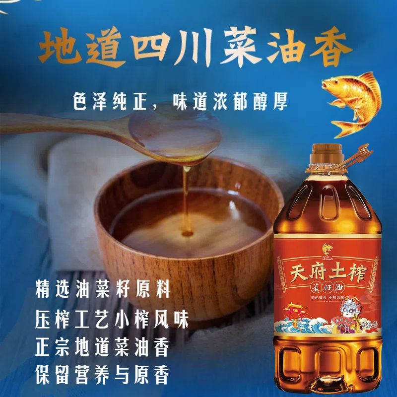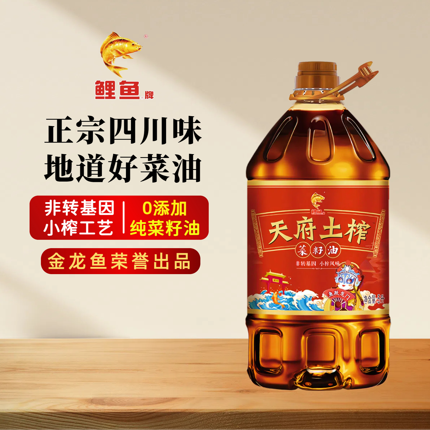 鲤鱼四川天府菜籽油5L非转基因压榨食用油芥酸浓香小榨小瓶装土榨