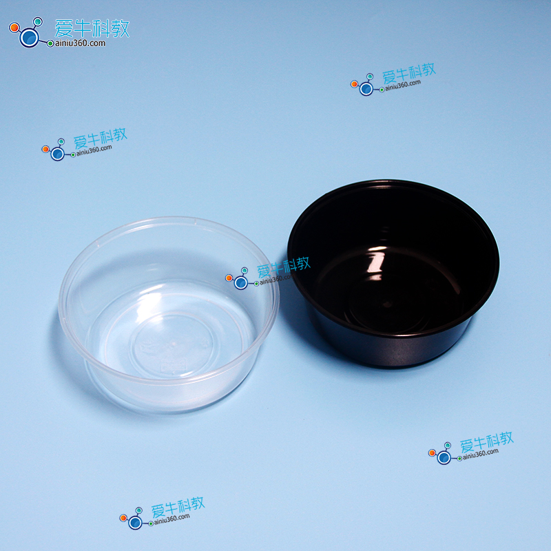 小学科学透明不透明塑料盒各1个用于种子发芽是否需要光的实验。