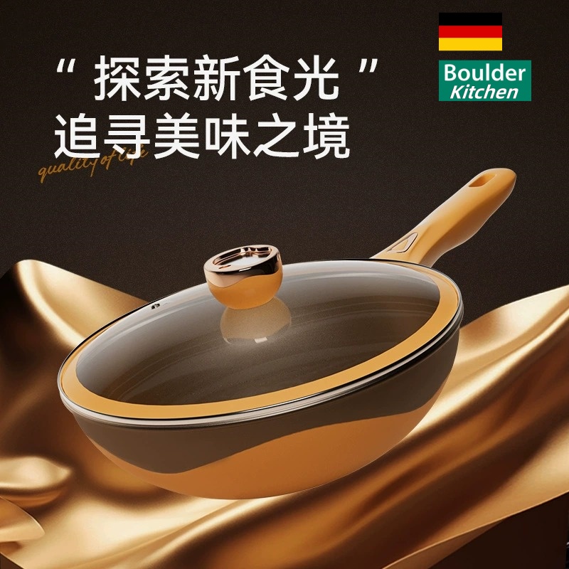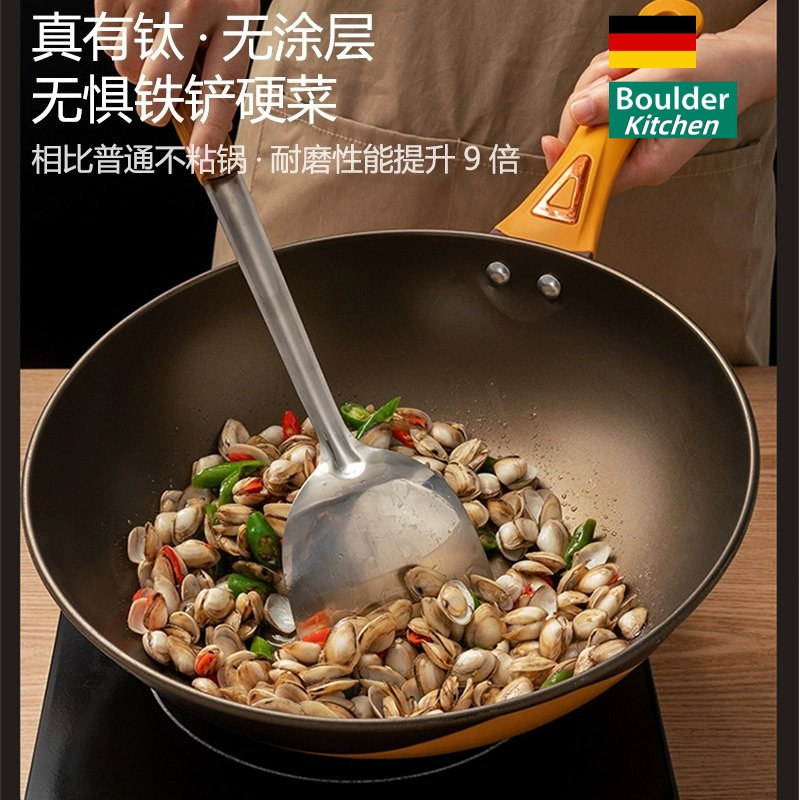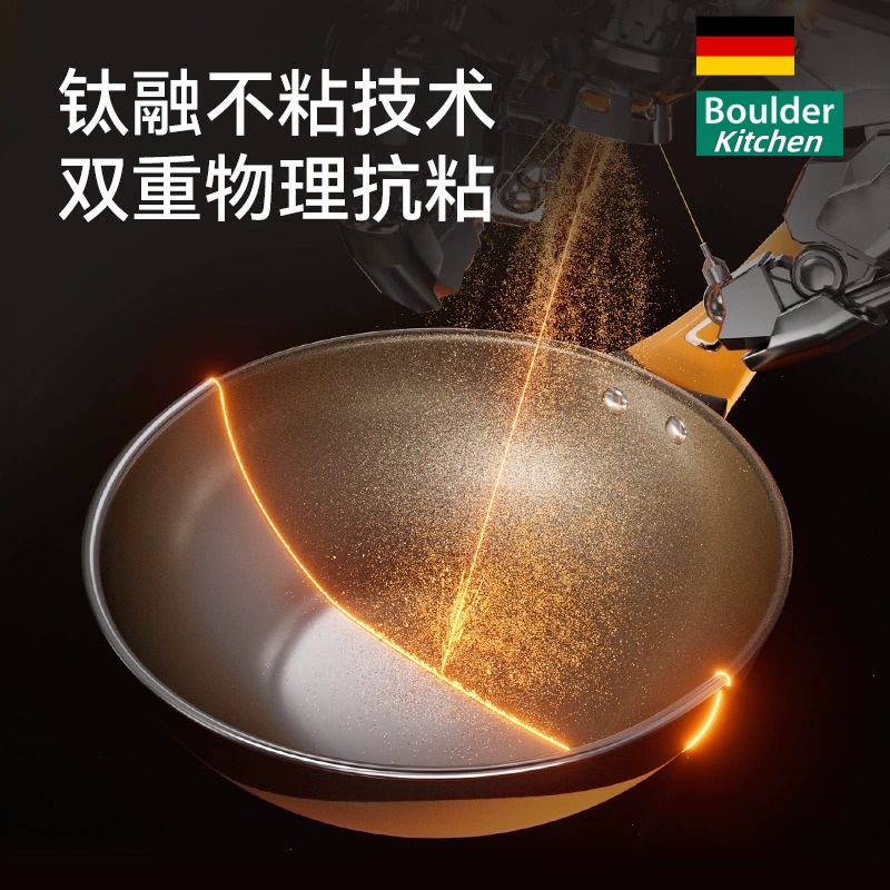 德国高端厨具钛合金不粘锅炒锅炒菜平底煎锅家用燃气灶电磁炉通用