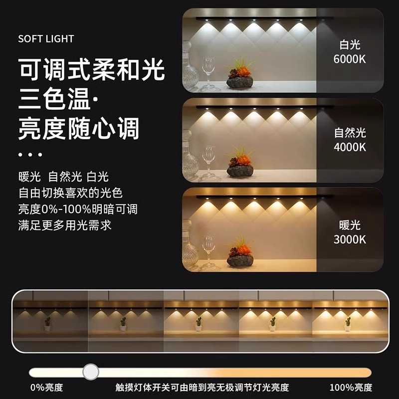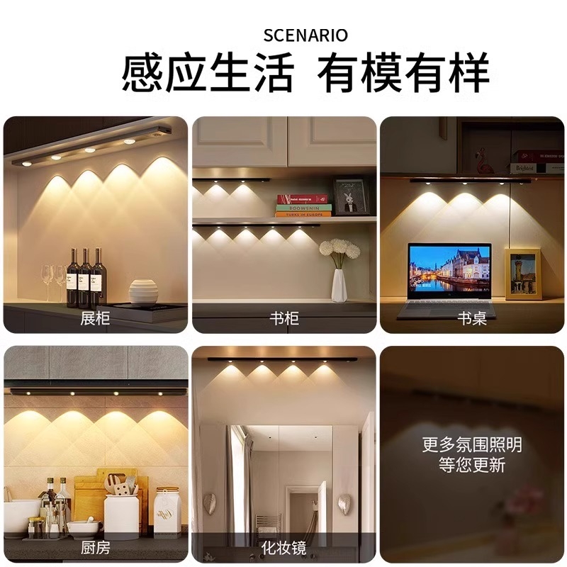 无线充电led人体感应橱柜灯带衣柜酒柜磁吸小山丘波纹灯条猫眼灯