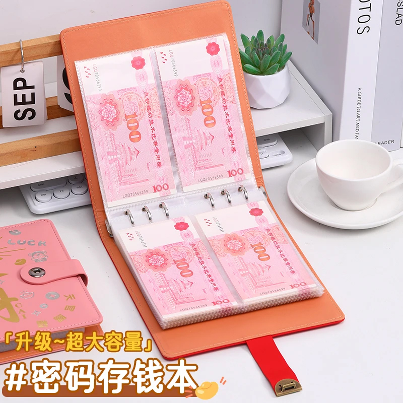 2025年新款密码锁现金存钱本收纳册大容量放钱4万元存钱夹钱册收藏册存钱袋儿童理财百元人民币纸币收纳神器