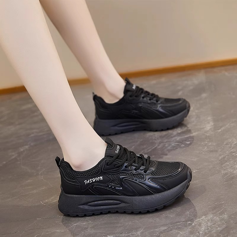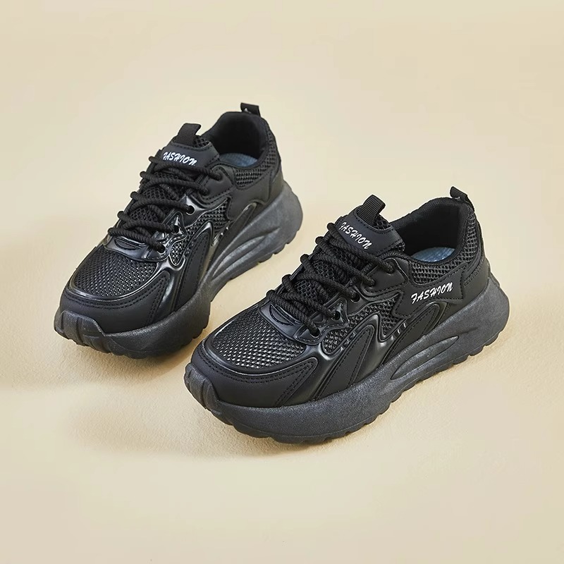厨房工作鞋女夏透气网鞋防滑鞋黑色上班小黑鞋运动老爹鞋不累脚