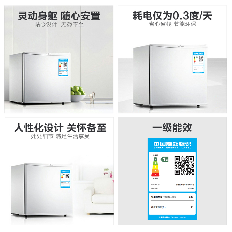 美的45升白色单门冷藏家用节能租房宿舍办公母婴美妆客厅冰箱