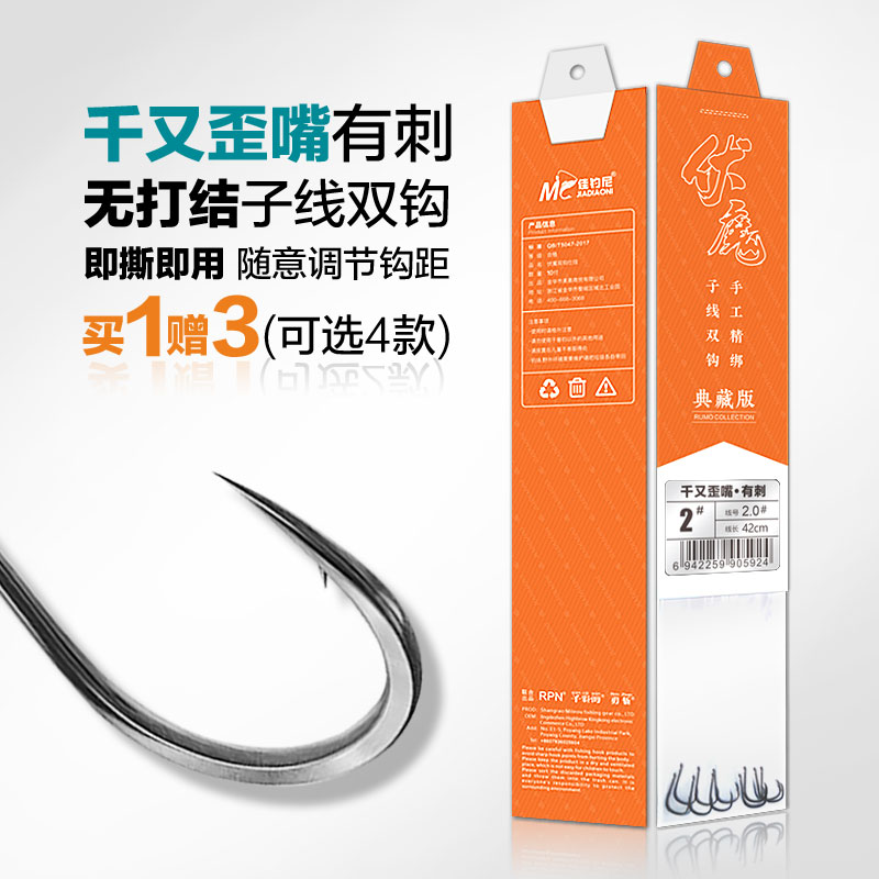 千又鱼钩子线双钩正品歪嘴成品绑好鱼钩鱼线组合装野钓手工水库