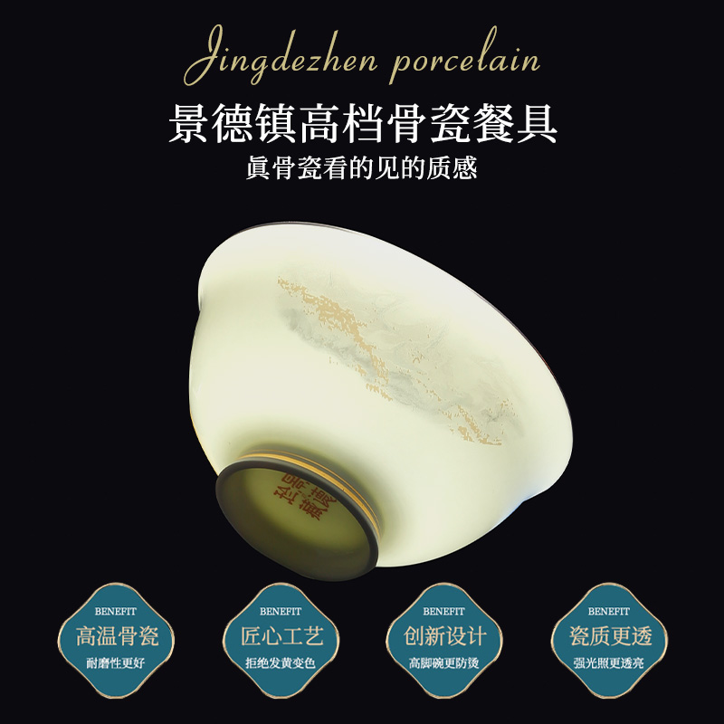 2025新款景德镇碗碟套装家用轻奢高温餐具高颜值乔迁中式碗盘组合