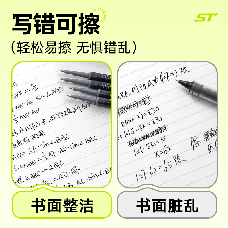 ST刷题笔高颜值按动中性笔圆珠笔黑色水笔小学生专用考试0.5速干碳素笔水性黑笔按压式做笔记签字笔非按斤卖