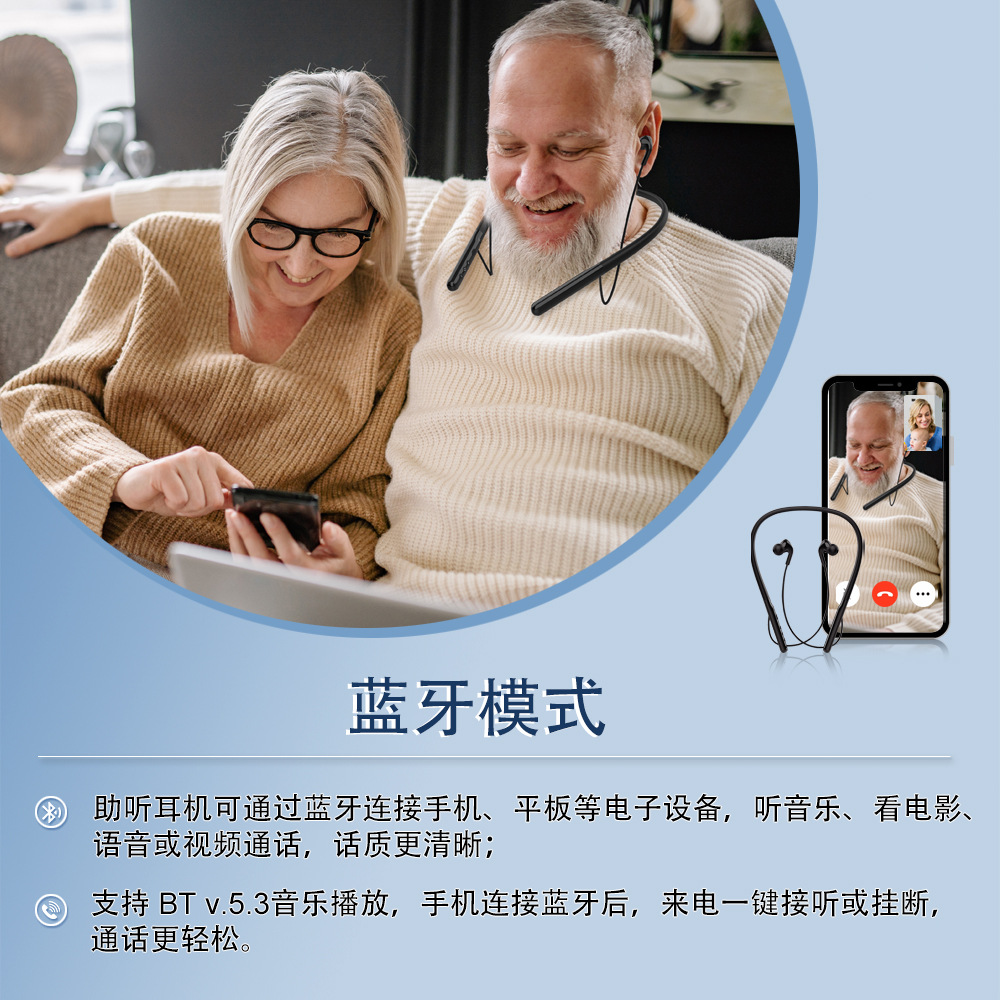 辅听耳机老人耳聋耳背挂脖蓝牙降噪超长续航16通道声音大音质清晰