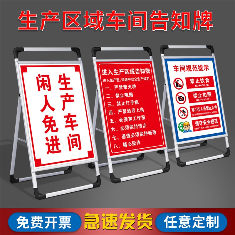 进入生产区请遵守安全规定重地提示牌架子立式禁y止入内标志牌消