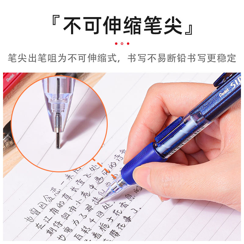 【0.7自动铅笔】日本派通Pentel活动铅笔侧按压自动笔PD257橡皮可伸缩学生儿童素描绘图可换芯学习文具用品