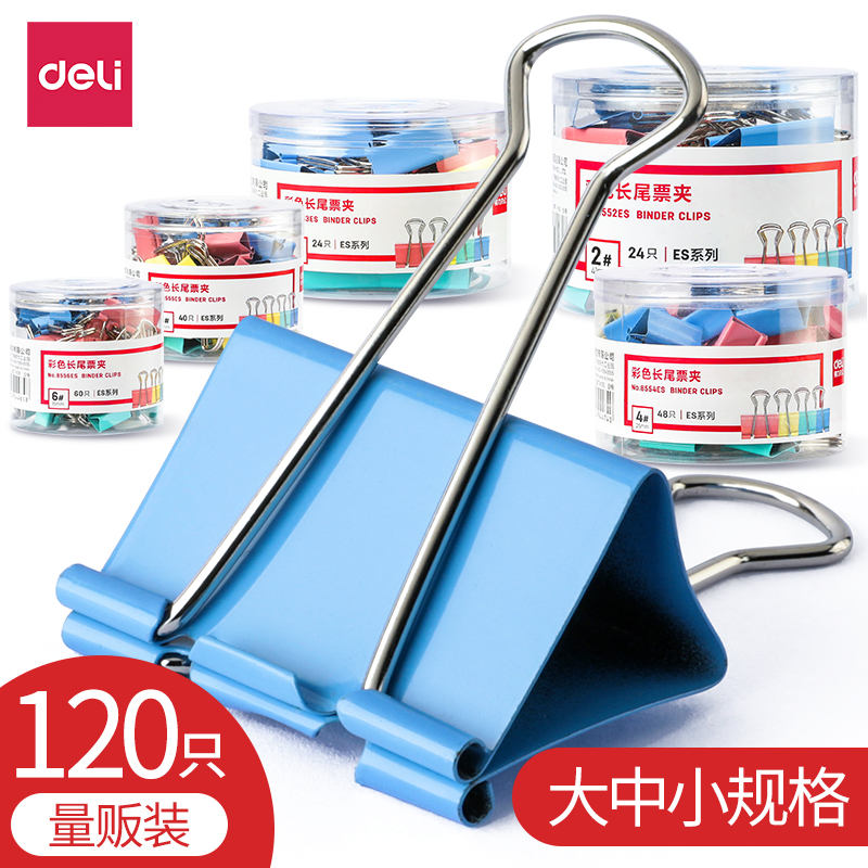 得力长尾夹夹子办公文件小夹子大号彩色票夹燕尾夹凤尾夹小号鱼尾夹蝴蝶夹夹子文具中号多功能特大固定书铁夹