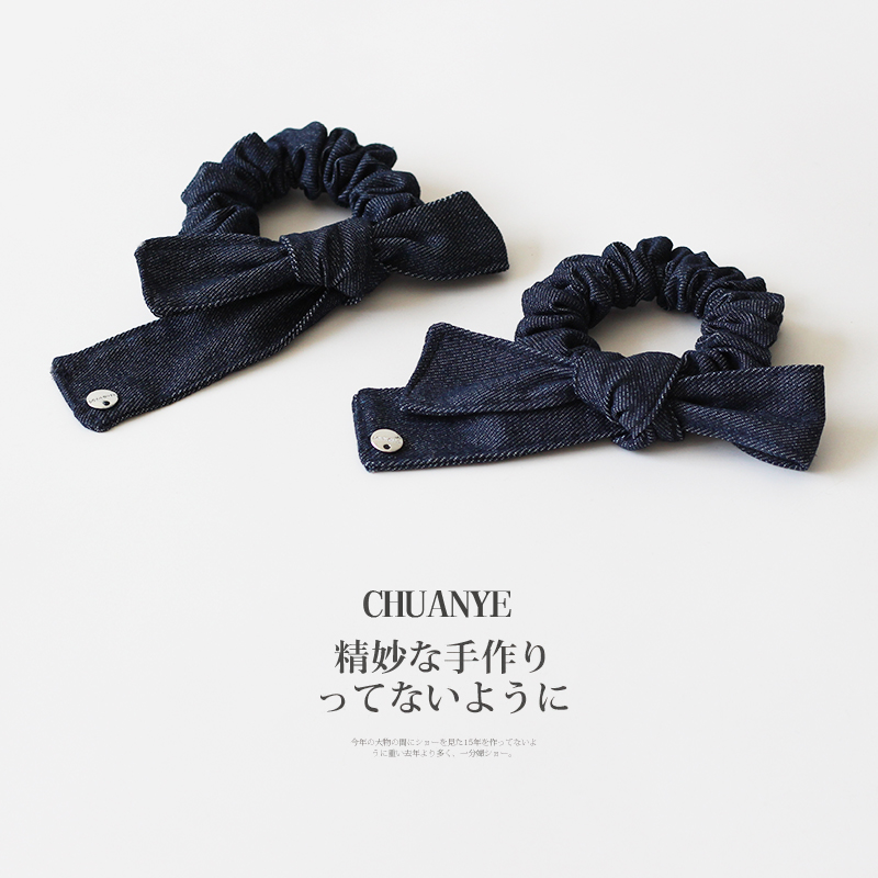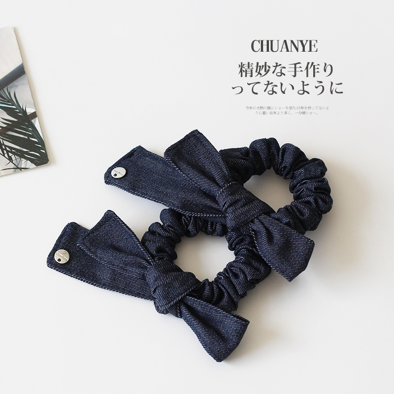 川野法式牛仔蓝蝴蝶结小肠发圈新款简约扎马尾的发绳头饰发饰短发