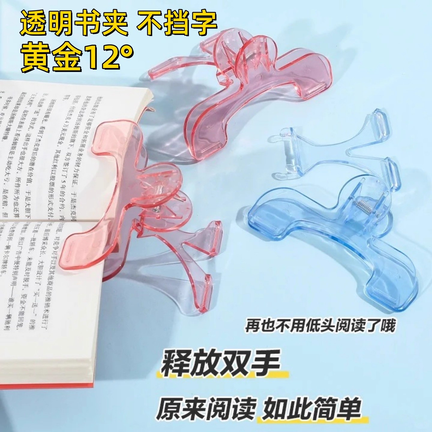 【下单立减30】宝盖头书夹固定书本夹透明便签夹翻书夹票据学生书