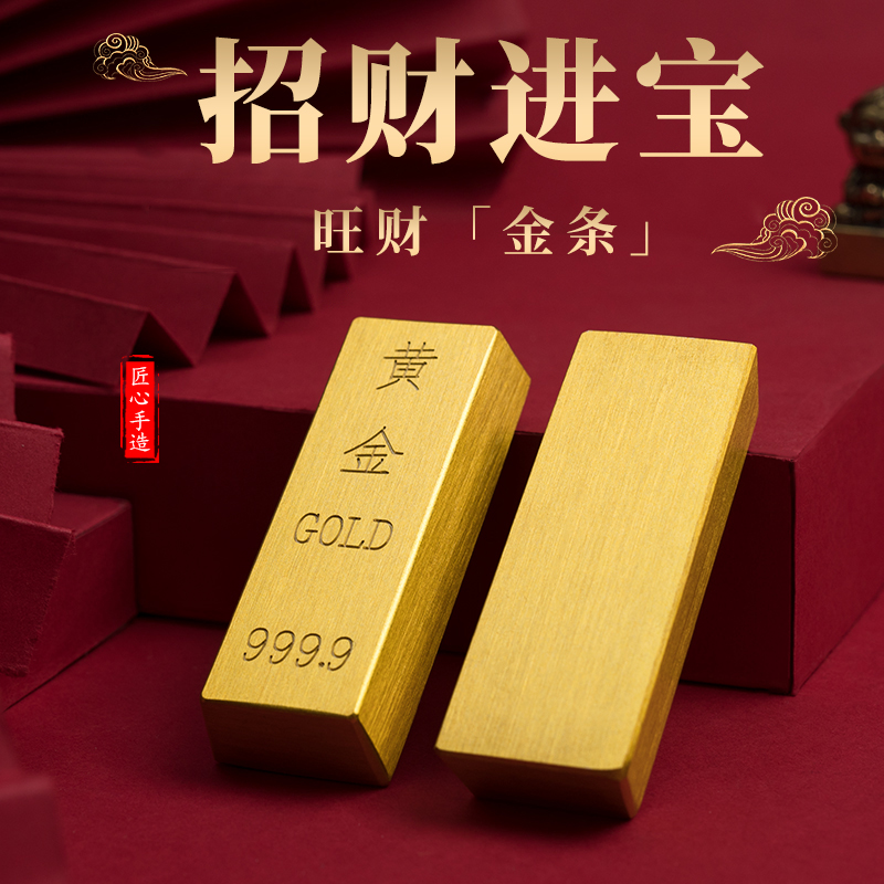 黄铜仿真金条gold条金砖样品超大影视道具实心镇尺镇纸礼盒摆件