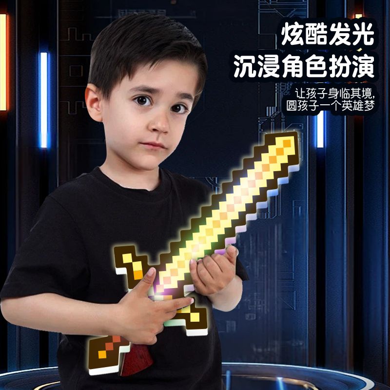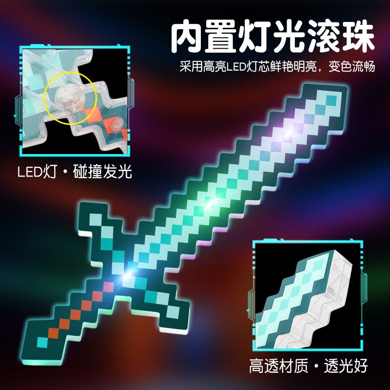 我的世界钻石剑马赛克游戏玩具方格儿童发光水晶剑男孩玩具刀剑