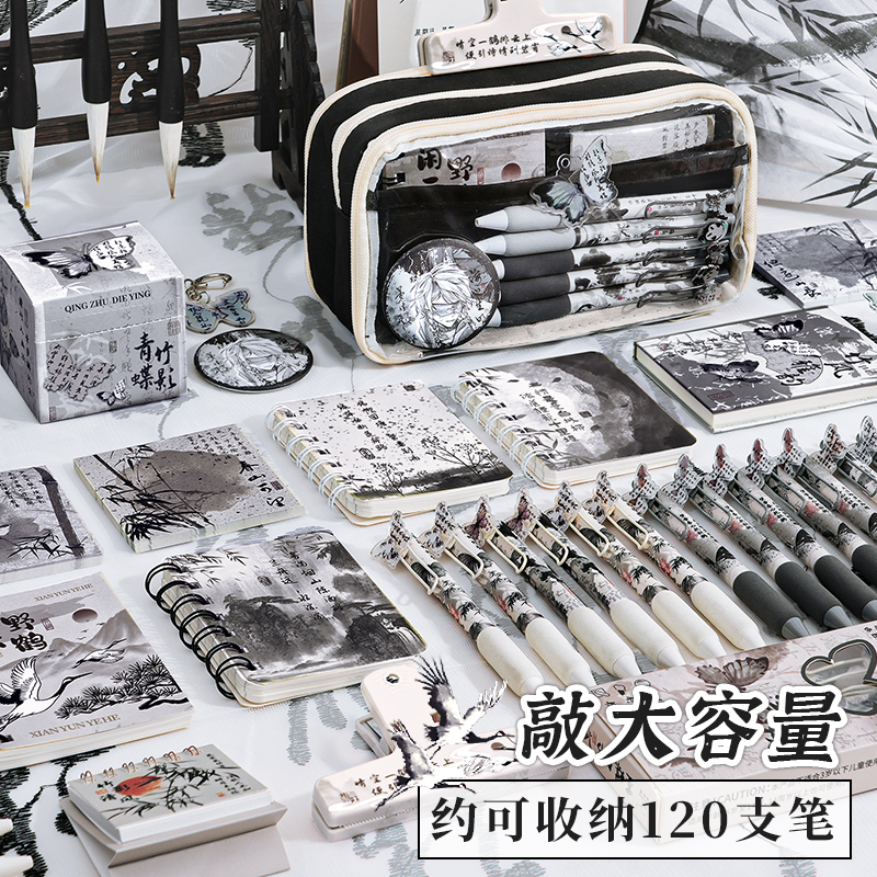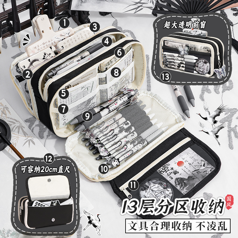 13层水墨国风!超大容量笔袋男生2025新款超火高颜值ins男孩款文具盒小学生铅笔盒透明初高中女生文具袋痛包