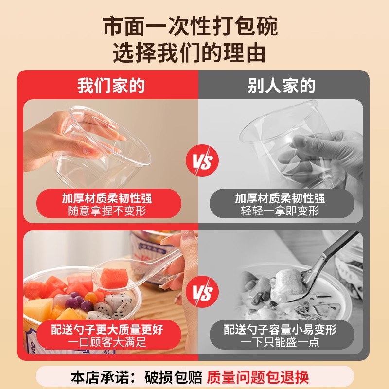 一次性碗塑料家用小碗套装圆形饭盒打包餐盒餐具冰粉商用碗筷