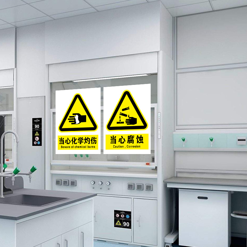 实验室安全标识牌警示贴化验室化学品指示牌当心腐蚀警示牌化学实验室当心灼伤中毒警告标志贴危废固废标志牌
