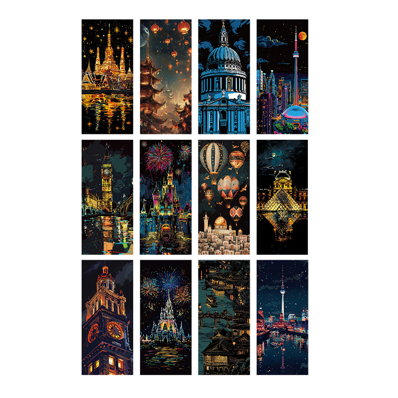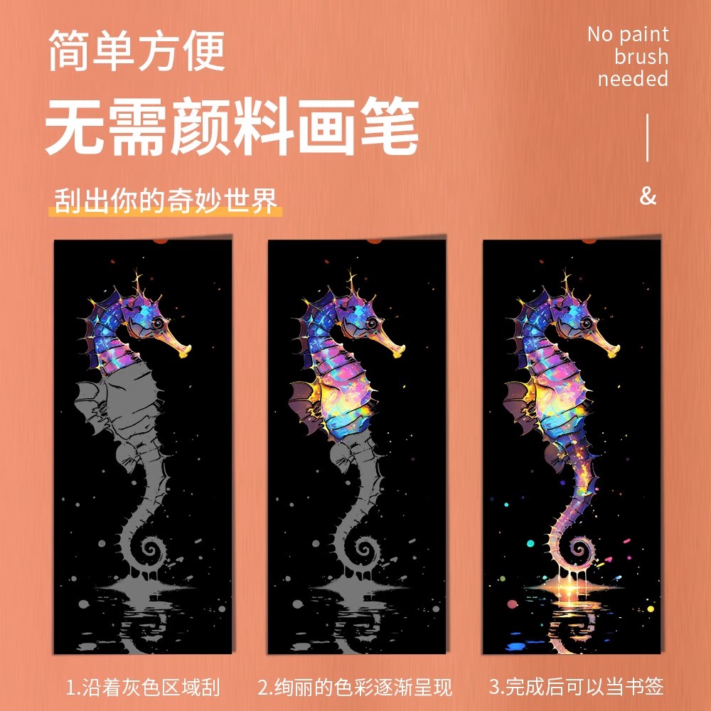 趣味创意彩色夜景书签刮刮画炫彩刮画纸diy玩具便签书签手工制作礼物