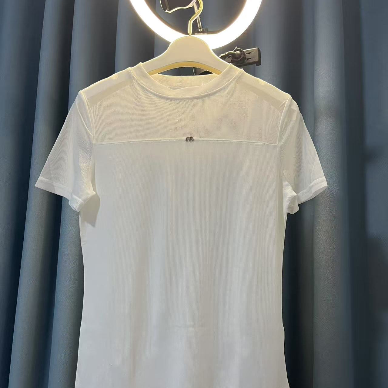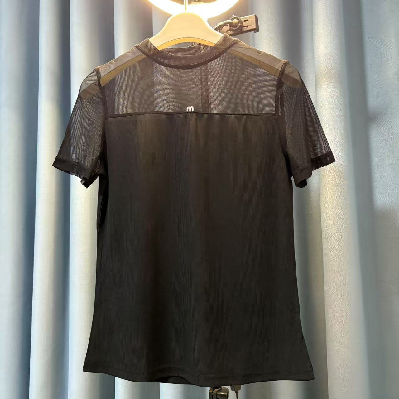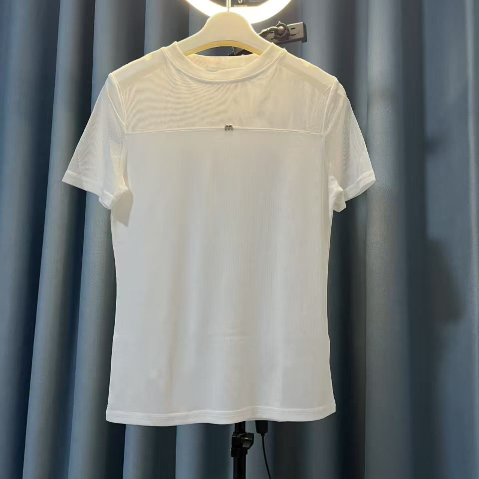 【自家工厂正版】春夏薄款上衣冰丝短袖T恤网纱拼接纯色百搭衫女