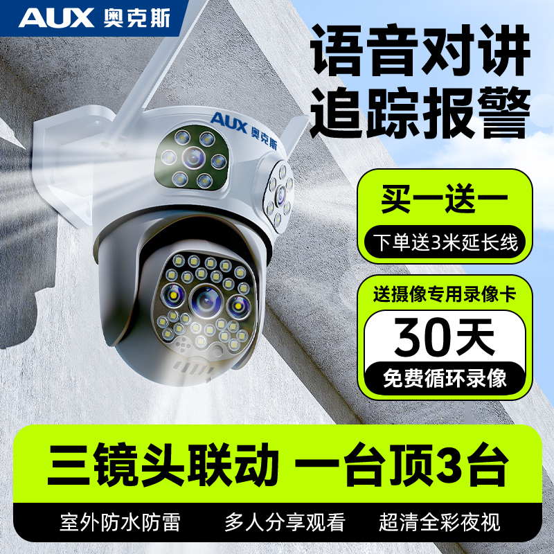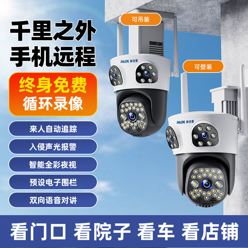 智能奥克斯监控器360度无死角室外摄像头家用远程手机无需网络