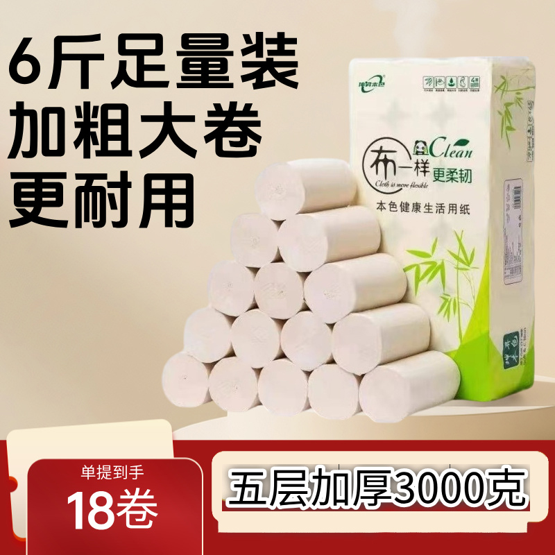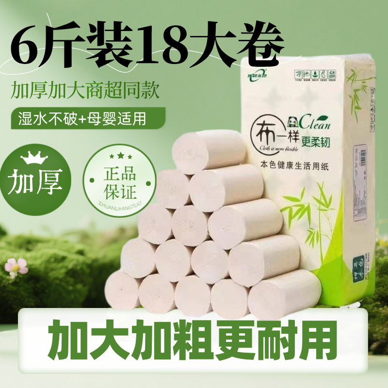 家用大卷纸加厚加大6斤装18卷实惠装卫生纸家庭装无芯卷纸厕纸