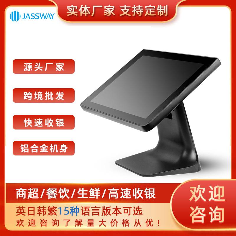 收银机15寸超市带系统便利店多语言英文版外贸双屏收银机一体机