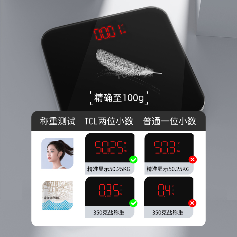 TCL充电防爆体重秤计智能高精准的体脂称家用宿舍小型减肥人体秤