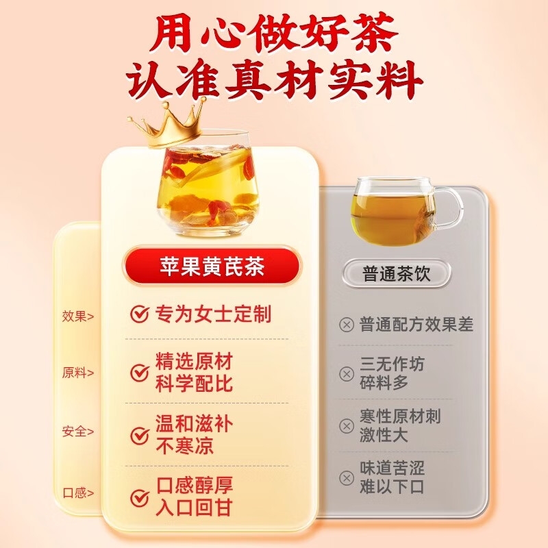 北京同仁堂苹果黄芪素颜水女生熬夜枸杞姜枣茶补气血调理脸色暗黄