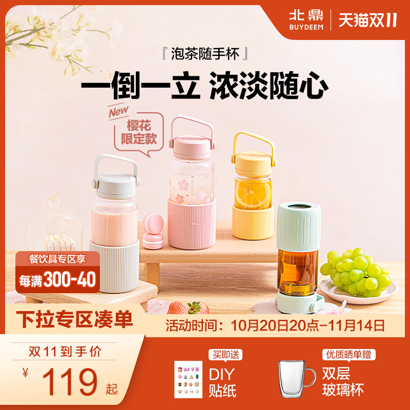 【新品】北鼎樱花泡茶杯子玻璃杯水杯女生茶水分离大容量便携随手