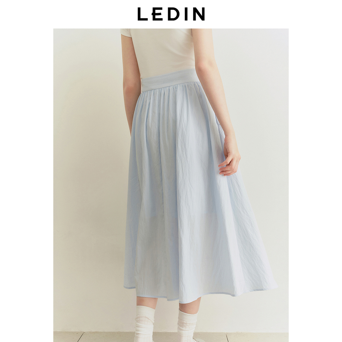 乐町蓝色及踝长裙春季新款莱赛尔飘逸大裙摆伞裙韩系清甜半身裙*