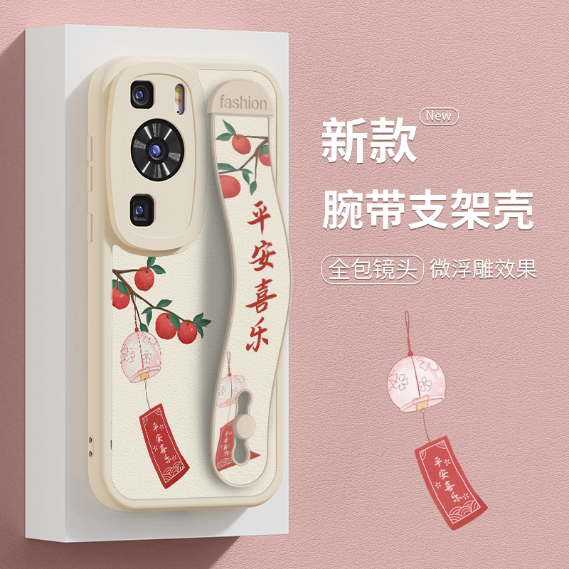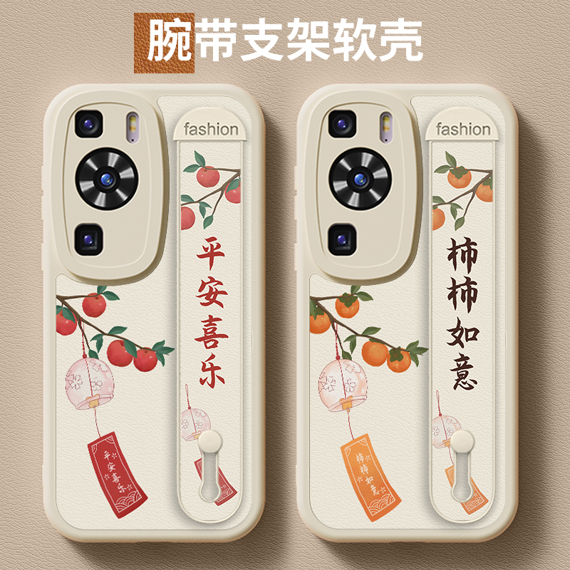 平安如意适用于华为p60手机壳nova11新款p50pro小羊皮荣耀90/80腕带支架p40pro防摔nova10简约p60全包女壳