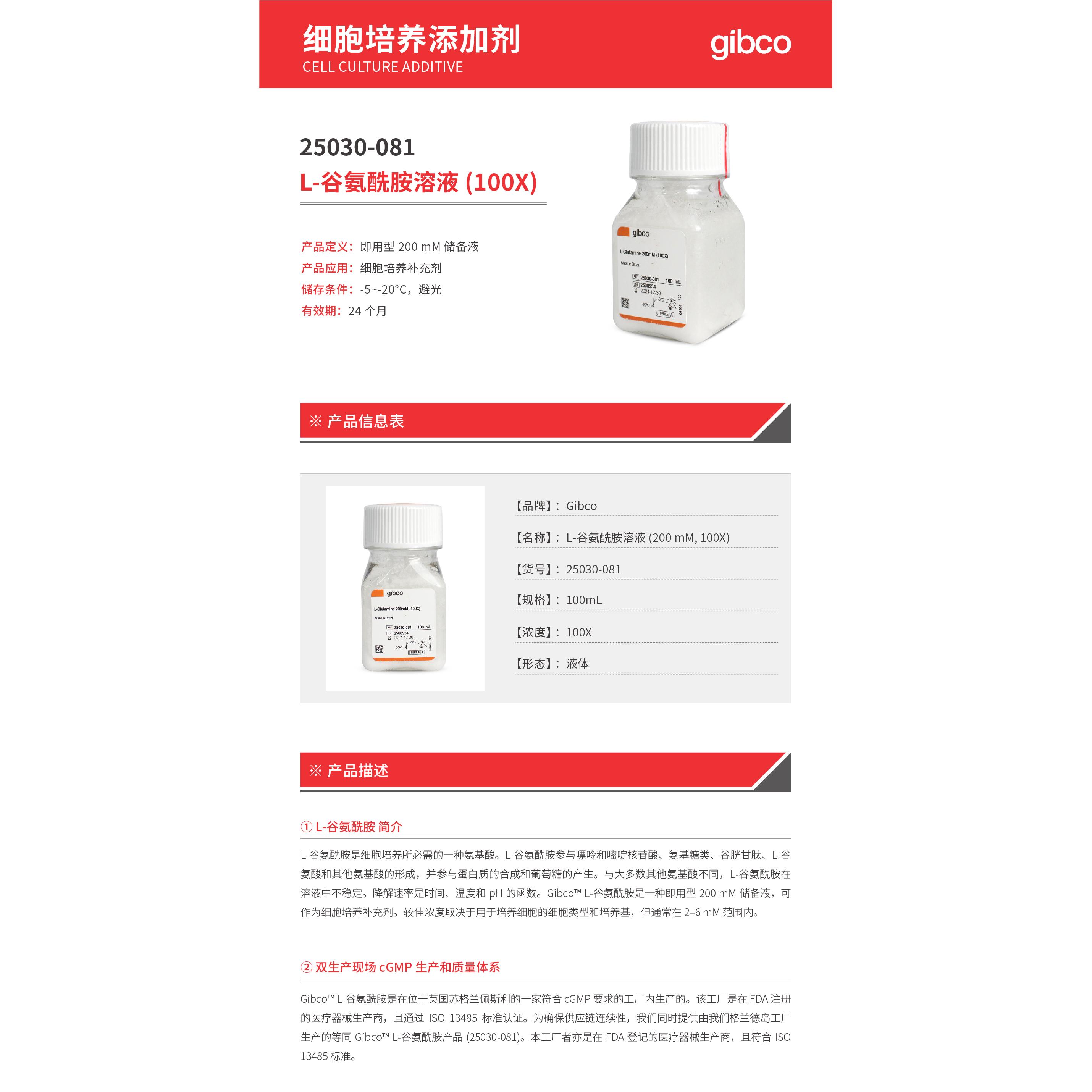 25030-081 L-谷氨酰胺溶液 (200 mM,100X)