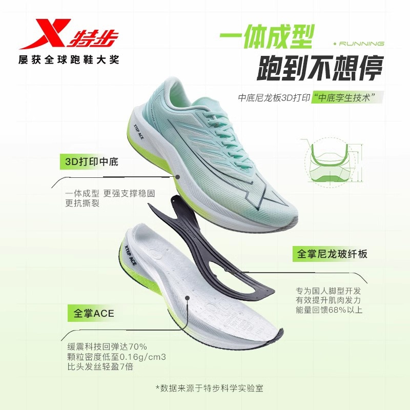 特步一体成型男跑步鞋竞训鞋体考适用耐磨缓震轻盈男女体测运动鞋
