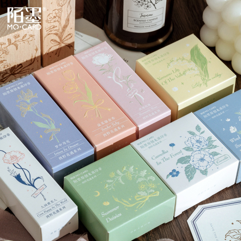 四野花遇木质印章 文艺手绘花朵玫瑰郁金香铃兰百合手账装饰印画