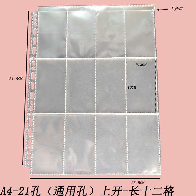 A4高清活页多规格正方格竖长条卡片机票收纳册内页袋活页样品册袋