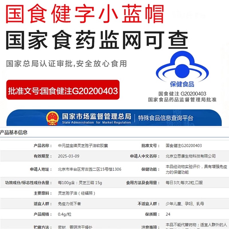 灵芝孢子油胶囊长白山破壁灵芝孢子粉免疫力官方旗舰店正品中元