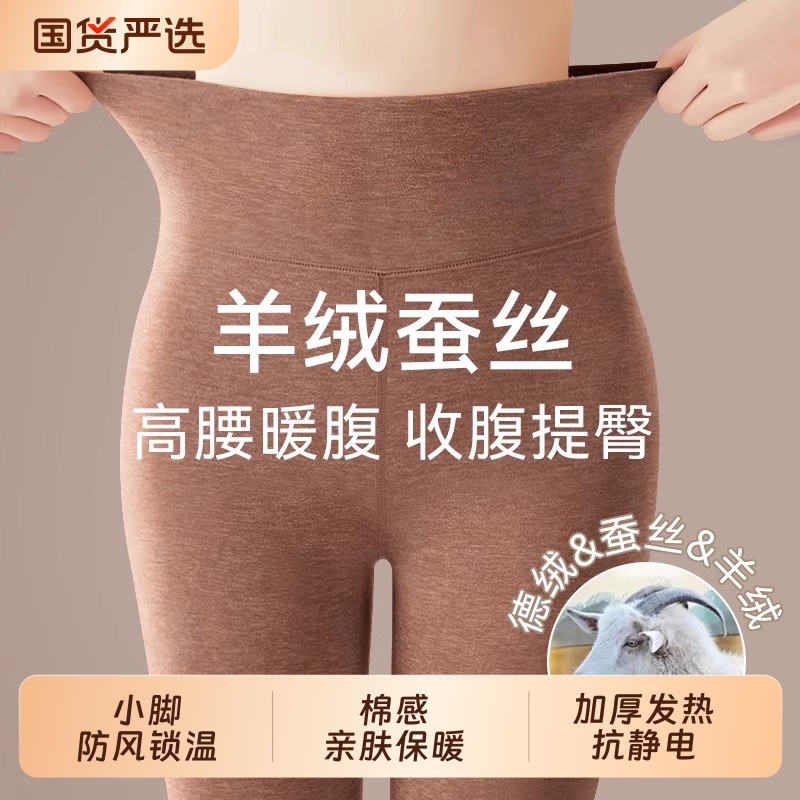 德绒秋裤女保暖裤冬季加厚内穿发热羊毛蚕丝护膝高腰显瘦打底裤