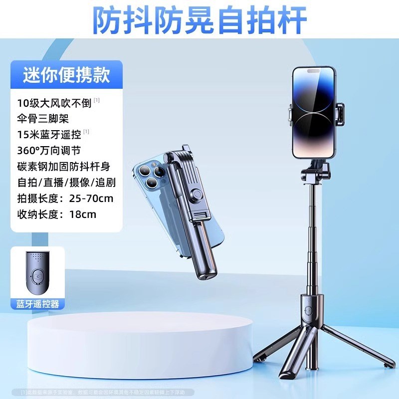 2025新款手机自拍杆三脚架防抖自拍神器v旅游专用直播支架便携通用手持多功能蓝牙拍摄360度旋转稳定器2024