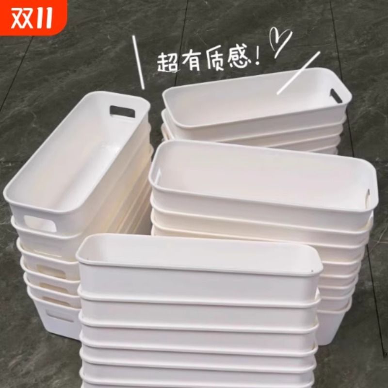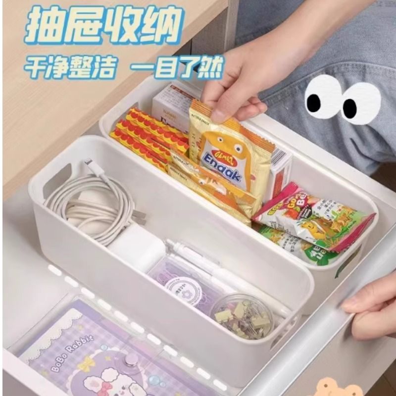 收纳盒桌面抽屉内置塑料化妆品零食袜子小杂物长条长方形整理盒子