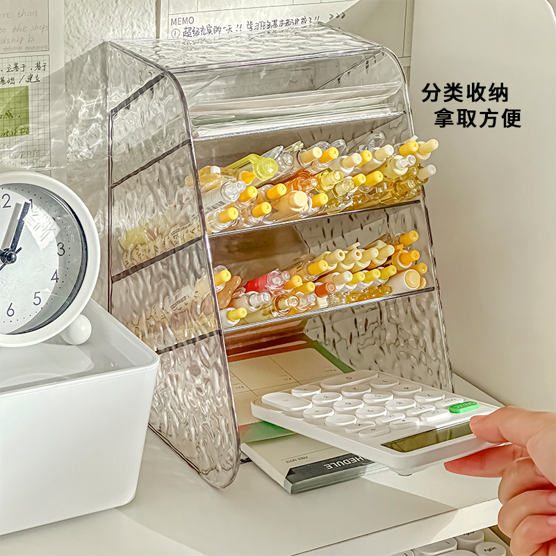 三年二班斜插式透明笔筒大容量学生女孩书桌桌面简约收纳盒置物架